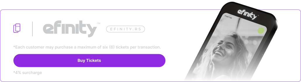 The legal entity that concluded the contract for the sale of tickets for the event with the Organizer of the event is the official distributor of tickets for the event through the webshop and mobile application. For the purposes of this document, the Seller is EFINITIX D.O.O. BELGRADE (hereinafter referred to as EFINITIX) Dimitrija Tucovića 10, Belgrade, ID number: 17242628, VAT reg. number: 100835855